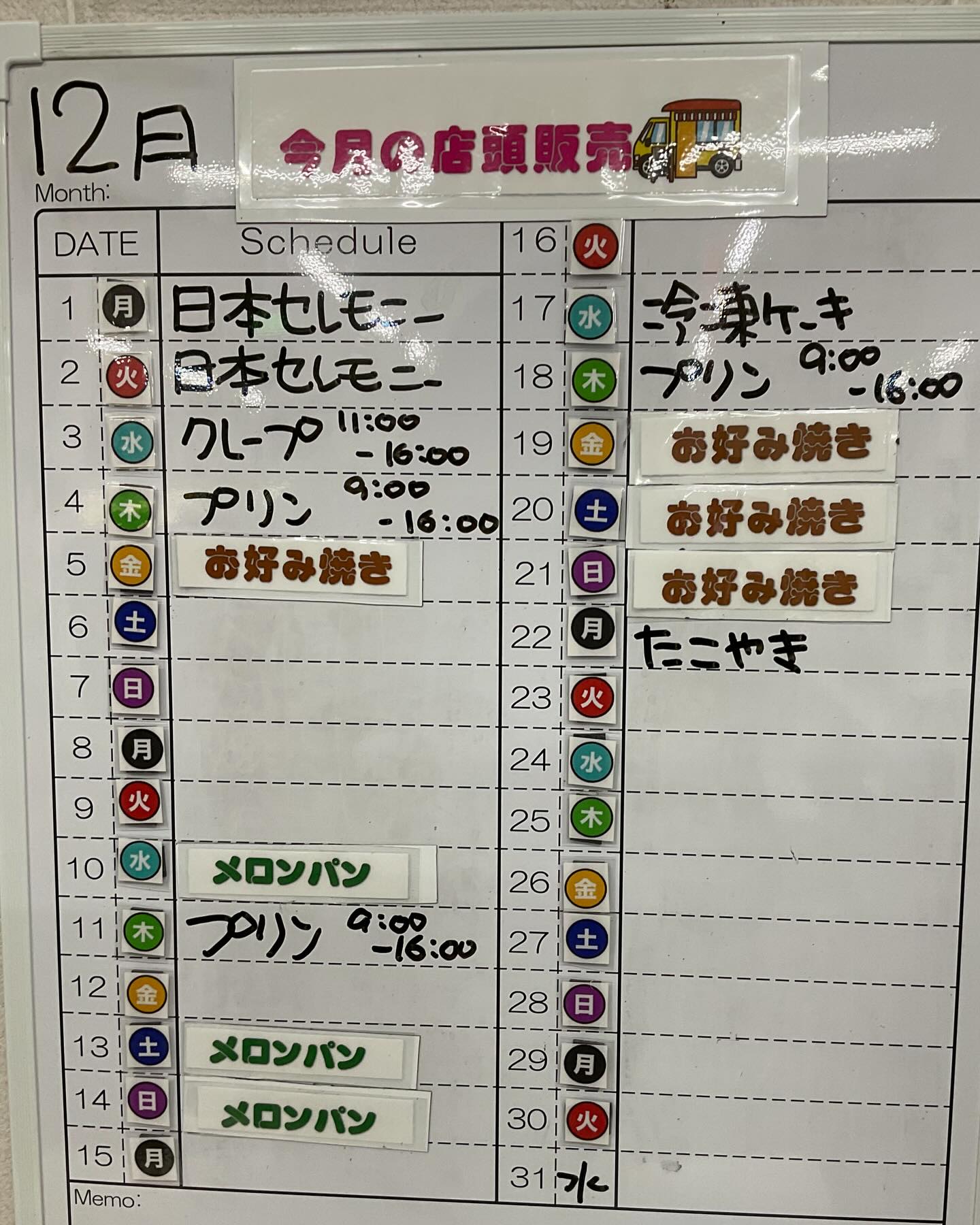 店内に販売予定表を掲示しておりますのでご来店の際にはチェックしてみてください。